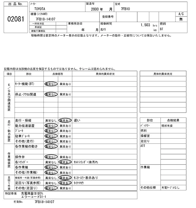 TOYOTA OTHER 2000 г., лот № 2081