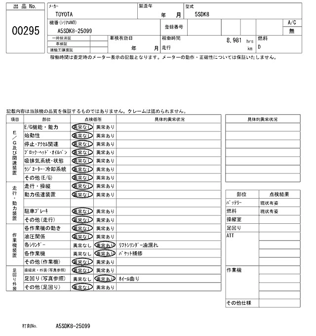 Статус выставлен на аукцион Лот 295 Аукцион ARAI Kenki Дата аукциона 03.02.2026
