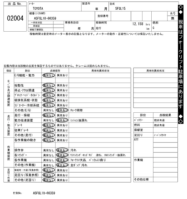 Пробег 12 000 км Кузов5FGL15 Комплектация FORKLIFT