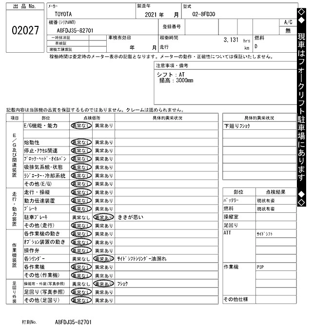 Год выпуска2021 Пробег 3 000 км Кузов02-8FD30 Комплектация FORKLIFT