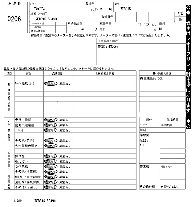 Год выпуска2015 Пробег 11 000 км Кузов7FBR15 КомплектацияLI-CHI FORKLIFT