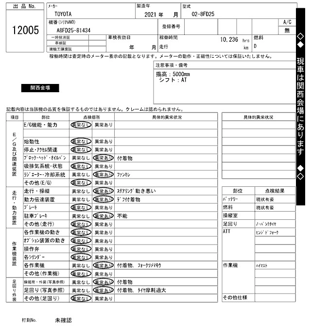 Статус выставлен на аукцион Лот 12005 Аукцион ARAI Kenki Дата аукциона 31.03.2026