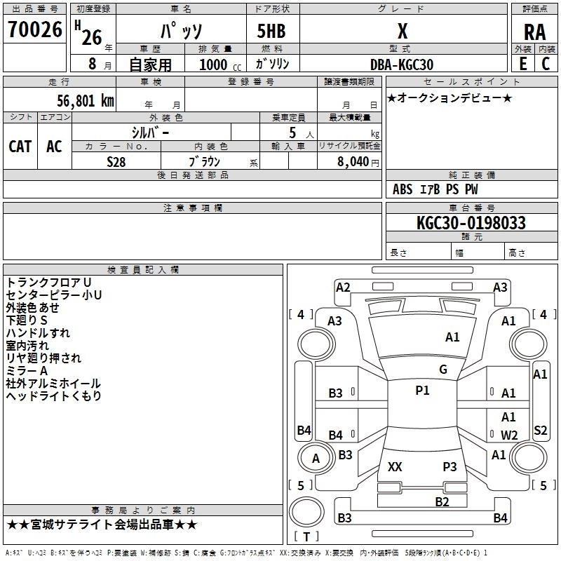 | X G PACKAGE | DBA-KGC30 | 1KR-FE | FF | CVT | 996cc | 69ps(51kW)/6000rpm | AИ-92 | 1 356 873 | |