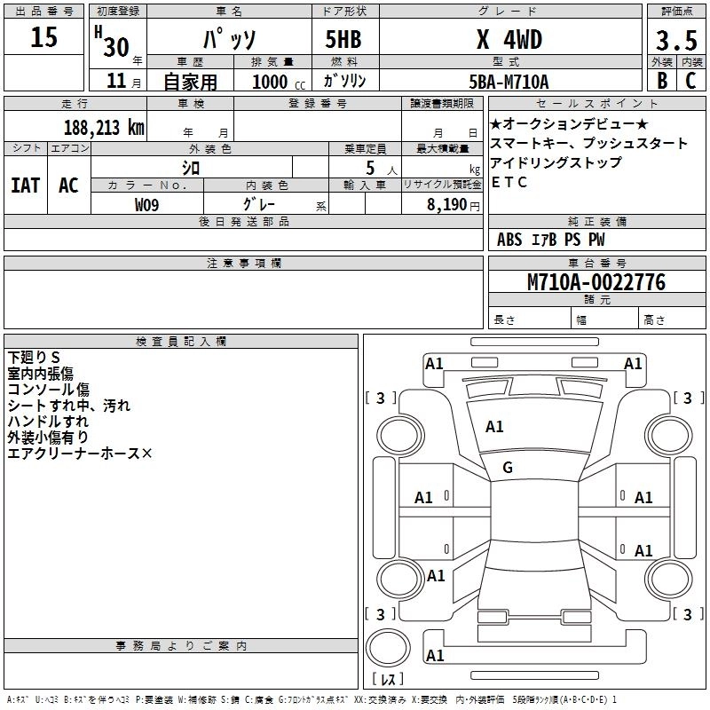 | X L PACKAGE S | 5BA-M710A | 1KR-FE | Full-time 4WD | CVT | 996cc | 69ps(51kW)/6000rpm | AИ-92 | 1 517 400 | |
