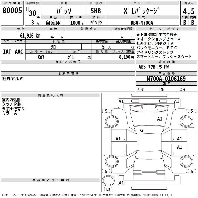 X L PACKAGE S 5BA-M700A 1KR-FE FF CVT 996cc 69ps(51kW)/6000rpm AИ-92 1 344 600