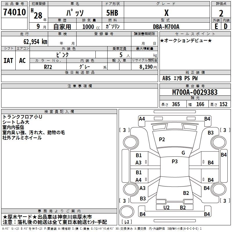 | MODA | DBA-M700A | 1KR-FE | FF | CVT | 996cc | 69ps(51kW)/6000rpm | AИ-92 | 1 431 000 | |