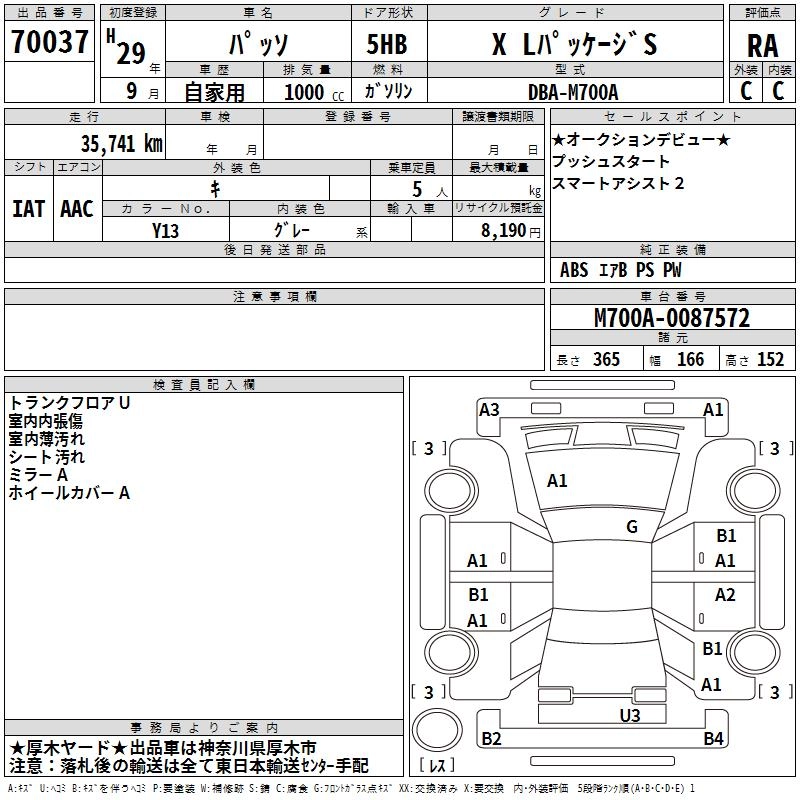 TOYOTA PASSO 2017 г., лот № 70037