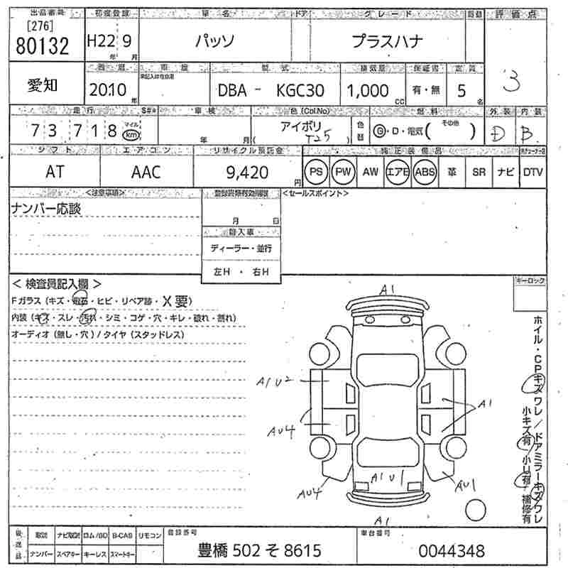 | PLUS HANA | DBA-NGC30 | 1NR-FE | FF | CVT | 1329cc | 95ps(70kW)/6000rpm | AИ-92 | 1 470 000 | |