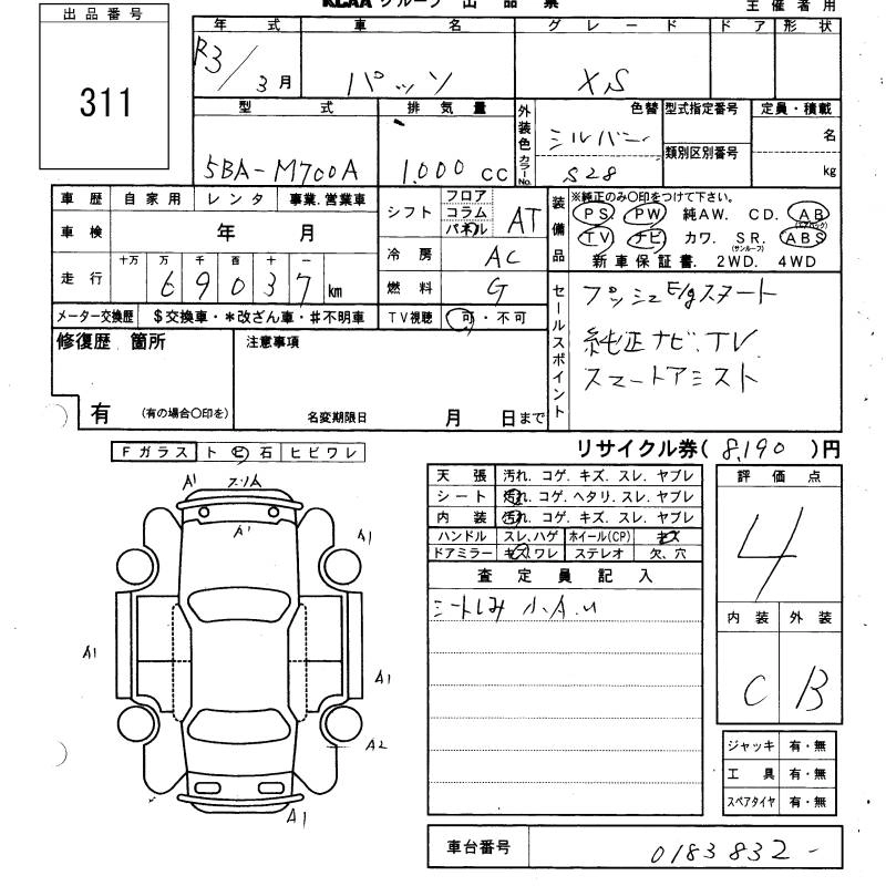 TOYOTA PASSO 2021 г., лот № 311