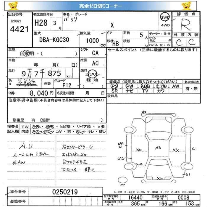 TOYOTA PASSO 2016 г., лот № 4421