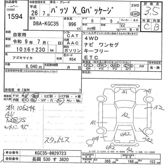 X G PACKAGE DBA-KGC35 1KR-FE Full-time 4WD CVT 996cc 69ps(51kW)/6000rpm AИ-92 1 497 273