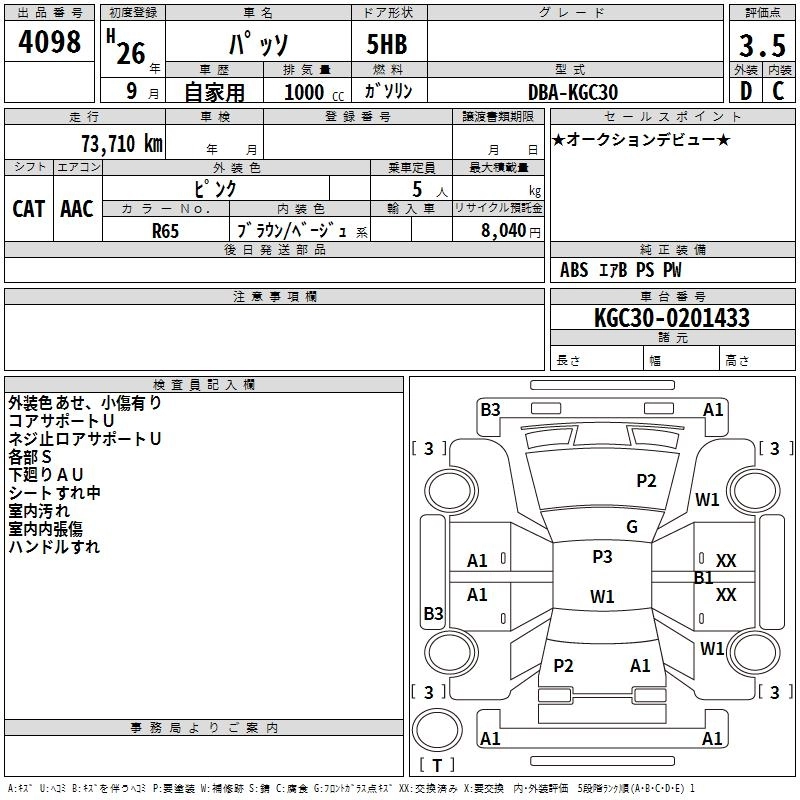 | X | DBA-KGC35 | 1KR-FE | Full-time 4WD | CVT | 996cc | 69ps(51kW)/6000rpm | AИ-92 | 1 398 109 | |