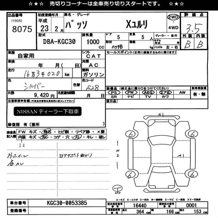 Стартовая цена авто на аукционе 54 000 ¥
