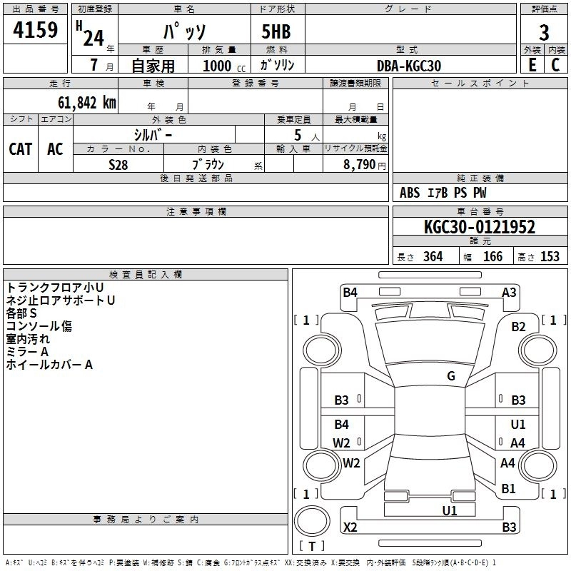 | X | DBA-KGC30 | 1KR-FE | FF | CVT | 996cc | 69ps(51kW)/6000rpm | AИ-92 | 1 105 000 | |