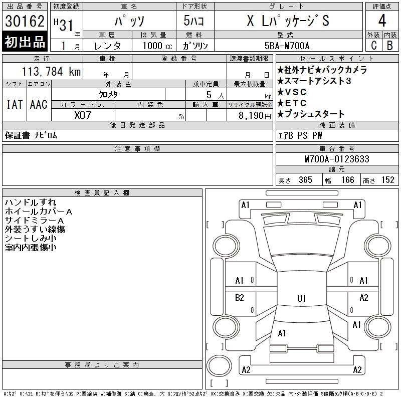 | X L PACKAGE S | 5BA-M700A | 1KR-FE | FF | CVT | 996cc | 69ps(51kW)/6000rpm | AИ-92 | 1 369 500 | |