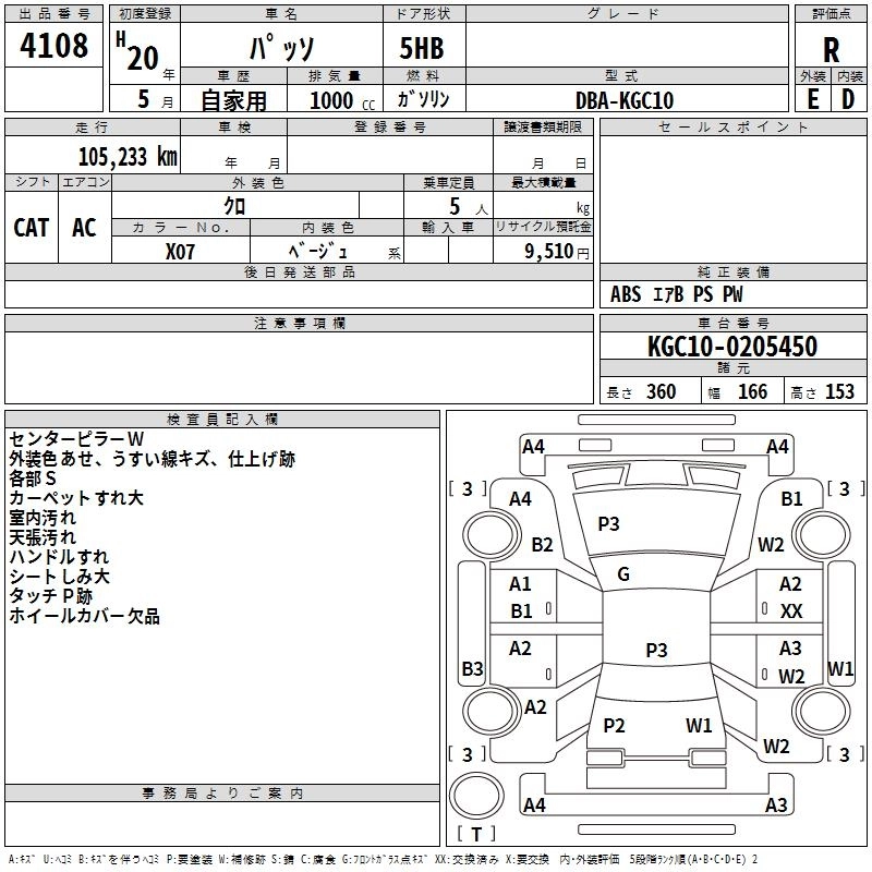 | X V PACKAGE | DBA-KGC10 | 1KR-FE | FF | 4AT | 996cc | 71ps(52kW)/6000rpm | AИ-92 | 966 000 | |