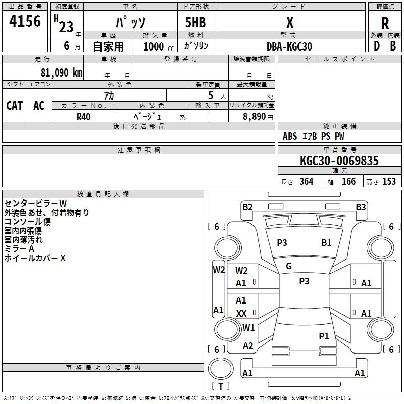 TOYOTA PASSO 2011 г., лот № 4156