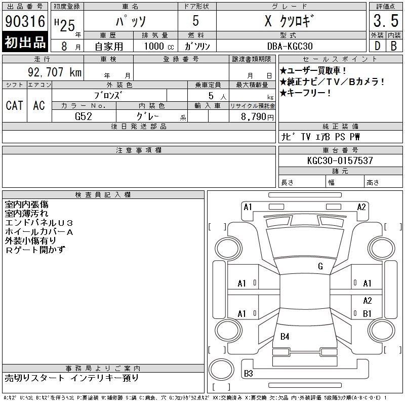 TOYOTA PASSO 2013 г., лот № 90316