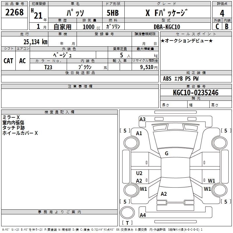 TOYOTA PASSO 2009 г., лот № 2268