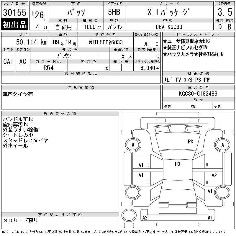 | X L PACKAGE | DBA-KGC35 | 1KR-FE | Full-time 4WD | CVT | 996cc | 69ps(51kW)/6000rpm | AИ-92 | 1 433 455 | |