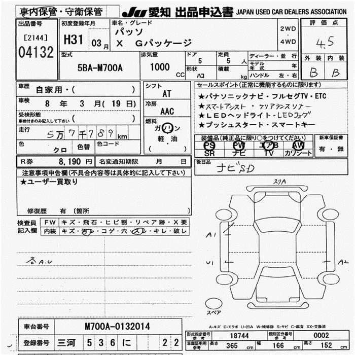 | X L PACKAGE S | 5BA-M700A | 1KR-FE | FF | CVT | 996cc | 69ps(51kW)/6000rpm | AИ-92 | 1 369 500 | |