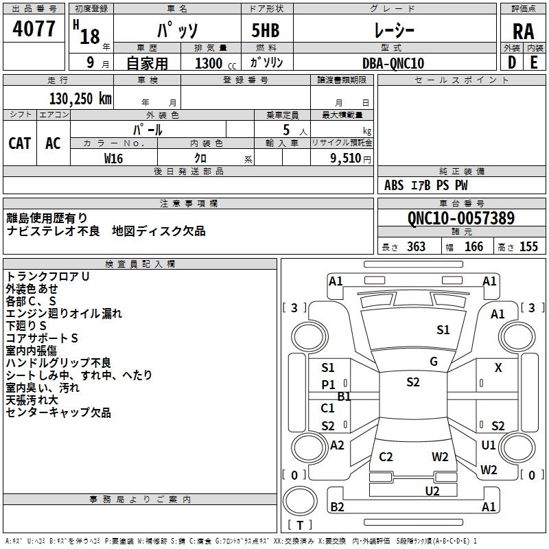 | RACY | DBA-KGC10 | 1KR-FE | FF | 4AT | 996cc | 71ps(52kW)/6000rpm | AИ-92 | 1 281 000 | |