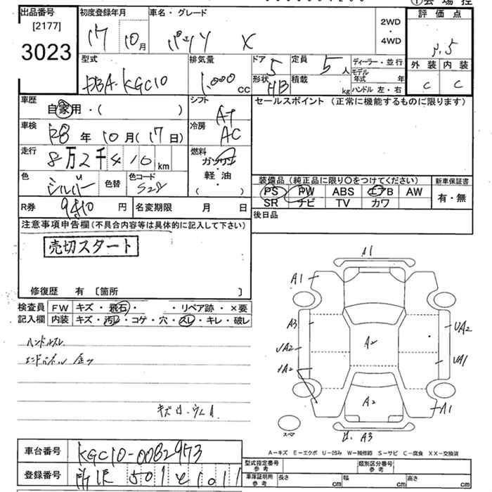 | X HID LIMITED | DBA-KGC10 | 1KR-FE | FF | 4AT | 996cc | 71ps(52kW)/6000rpm | AИ-92 | 1 071 000 |