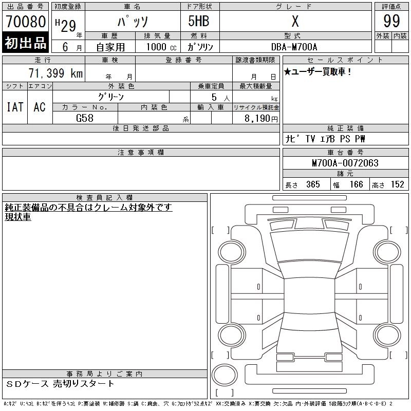TOYOTA PASSO 2017 г., лот № 70080