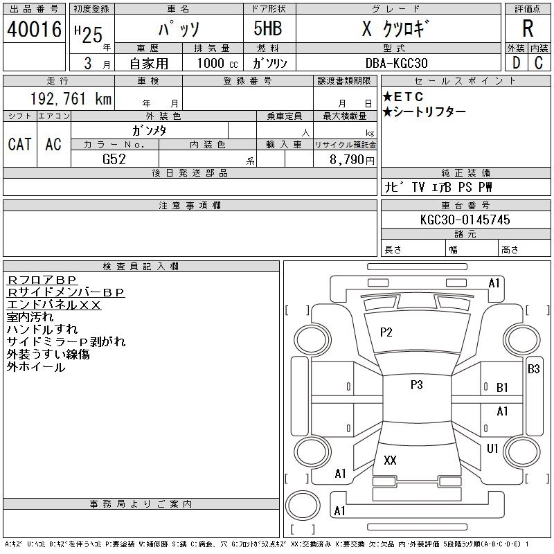 TOYOTA PASSO 2013 г., лот № 40016