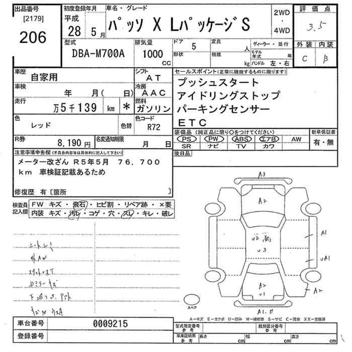 | X S | DBA-M700A | 1KR-FE | FF | CVT | 996cc | 69ps(51kW)/6000rpm | AИ-92 | 1 215 000 | |
