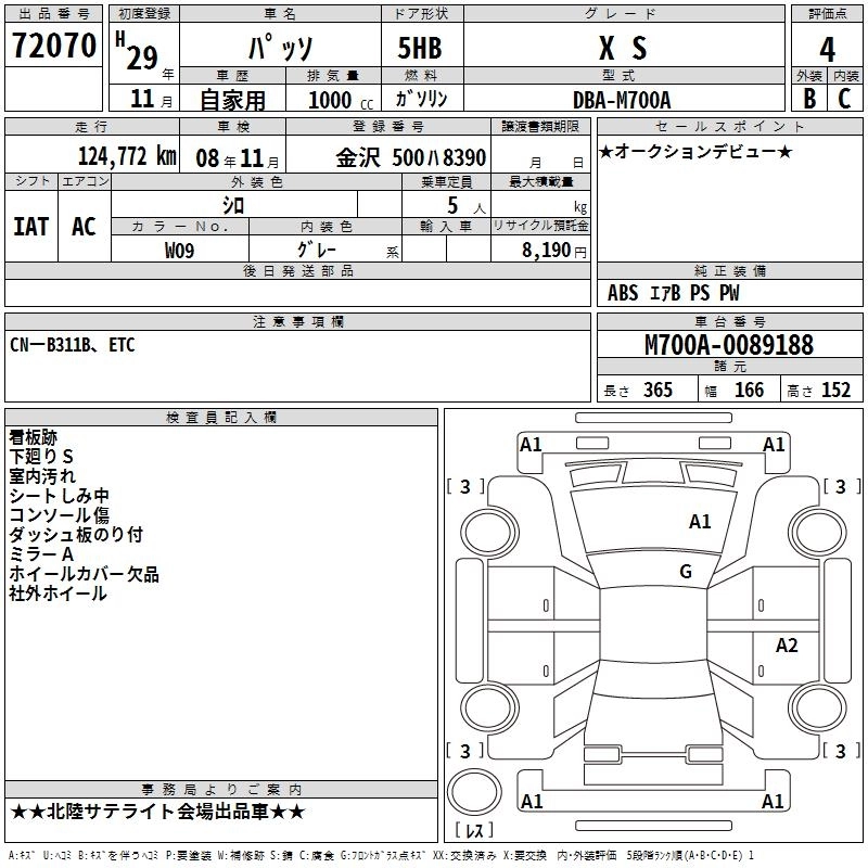 TOYOTA PASSO 2017 г., лот № 72070