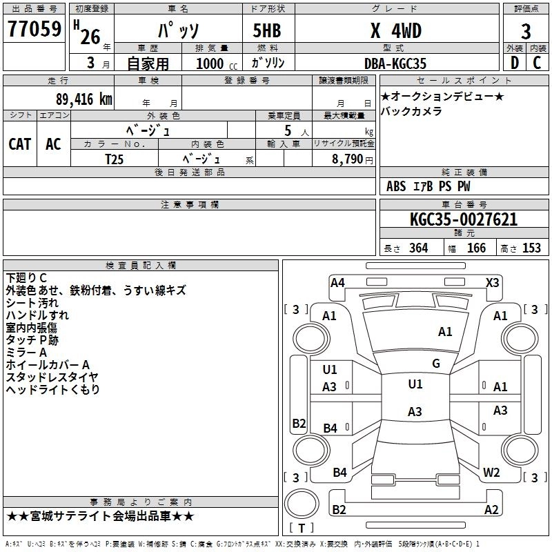 | X G PACKAGE | DBA-KGC35 | 1KR-FE | Full-time 4WD | CVT | 996cc | 69ps(51kW)/6000rpm | AИ-92 | 1 497 273 | |