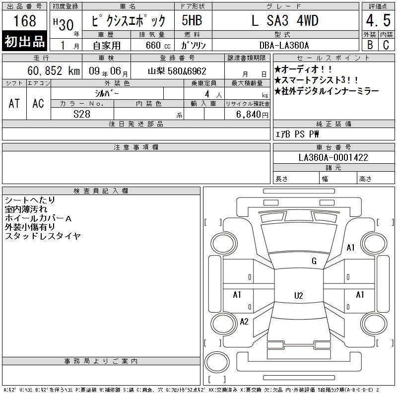 | B | 5BA-LA360A | KF | Full-time 4WD | CVT | 658cc | 49ps(36kW)/6800rpm | AИ-92 | 972 000 | |
