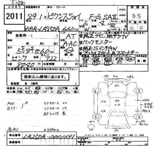 | F G TURBO SA III PRIME COLLECTION | DBA-LA250A | KF | FF | CVT | 658cc | 64ps(47kW)/6400rpm | AИ-92 | 1 582 200 | |