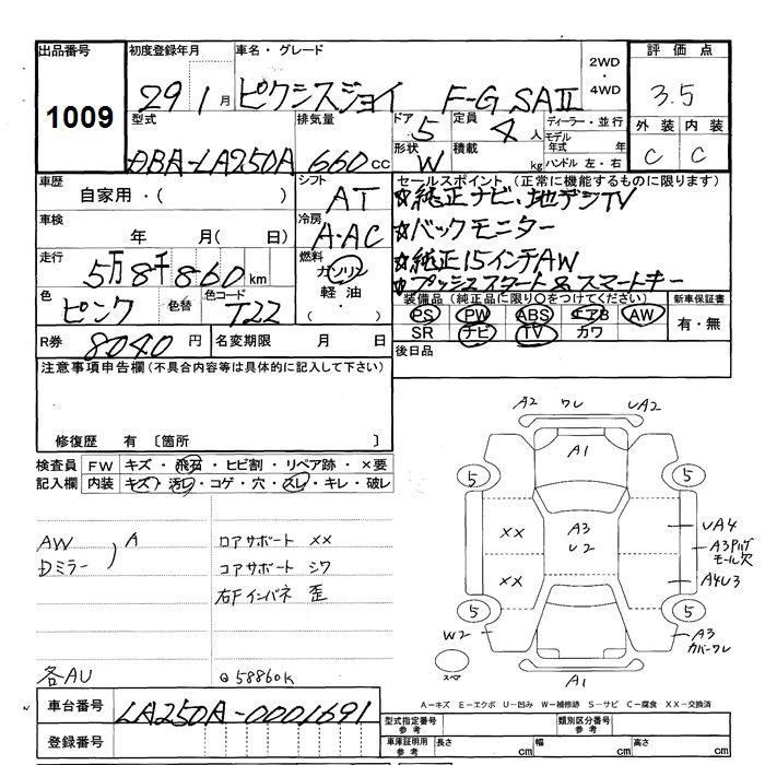 | F G TURBO SA III PRIME COLLECTION | DBA-LA250A | KF | FF | CVT | 658cc | 64ps(47kW)/6400rpm | AИ-92 | 1 582 200 | |