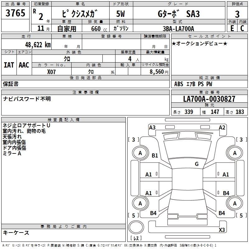 | G TURBO SA III | DBA-LA700A | KF | FF | CVT | 658cc | 64ps(47kW)/6400rpm | AИ-92 | 1 705 000 | |