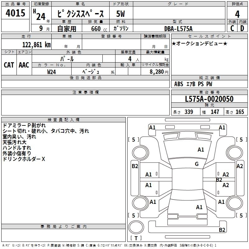 L DBA-L575A KF FF CVT 658cc 52ps(38kW)/6800rpm AИ-92 1 120 000