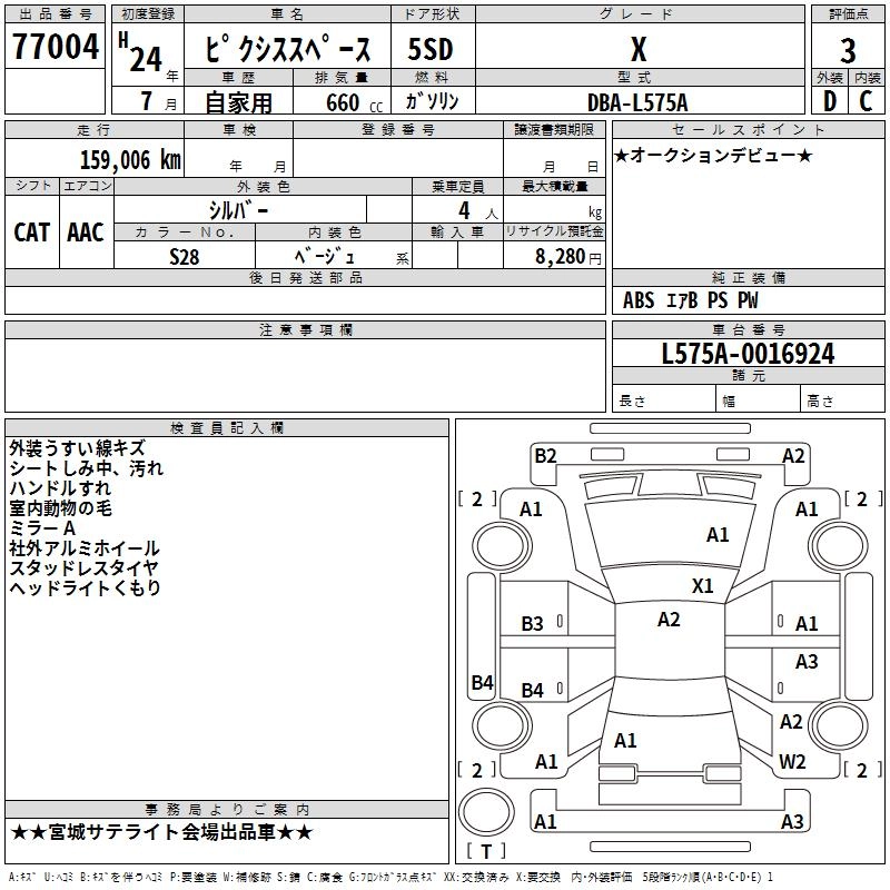 | CUSTOM X | DBA-L575A | KF | FF | CVT | 658cc | 52ps(38kW)/6800rpm | AИ-92 | 1 320 000 | |