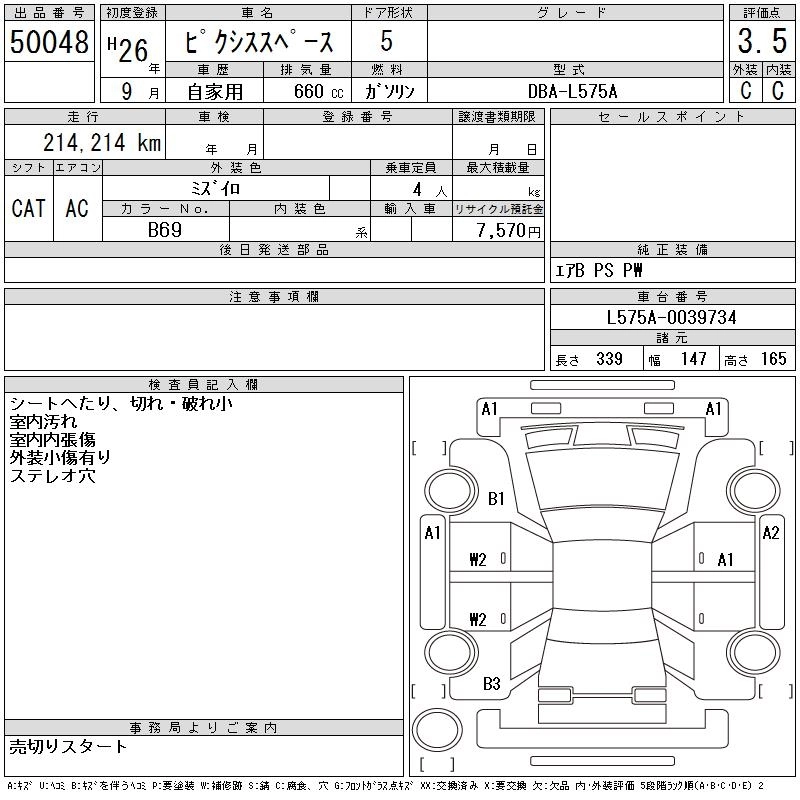 | X | DBA-L575A | KF | FF | CVT | 658cc | 52ps(38kW)/6800rpm | AИ-92 | 1 260 000 | |