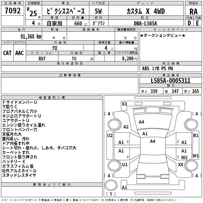 | X | DBA-L575A | KF | FF | CVT | 658cc | 52ps(38kW)/6800rpm | AИ-92 | 1 225 000 | |