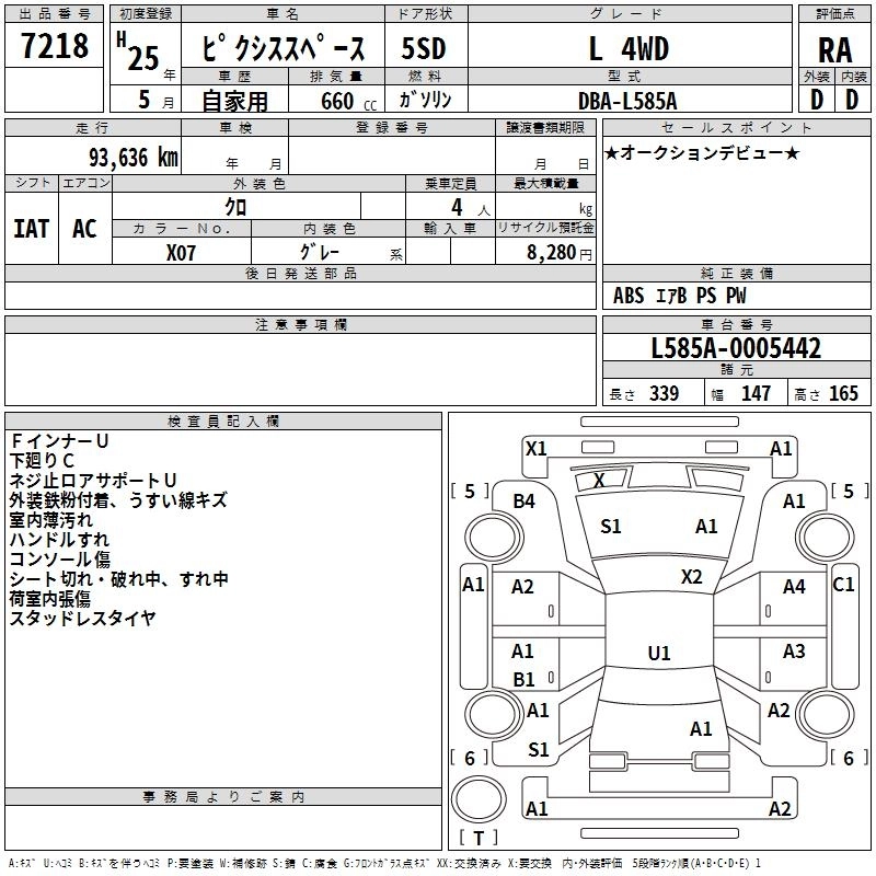 X DBA-L585A KF Full-time 4WD CVT 658cc 52ps(38kW)/6800rpm AИ-92 1 346 000