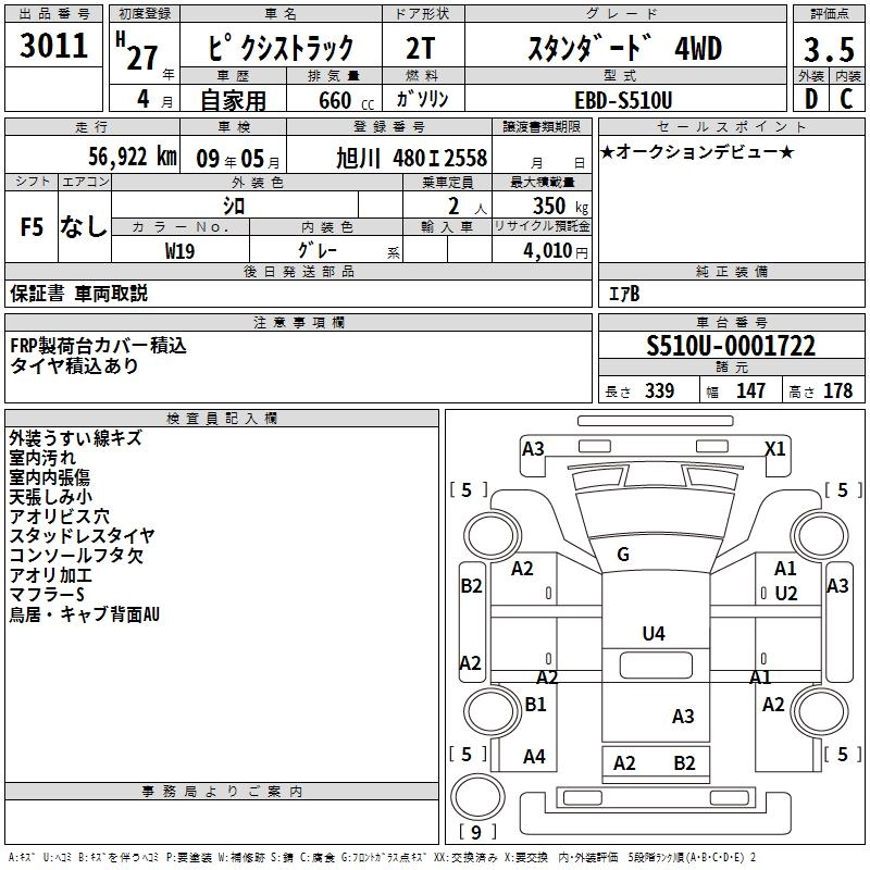 Год выпуска2015 Пробег 57 000 км КузовS510U Комплектация STANDARD 4WD