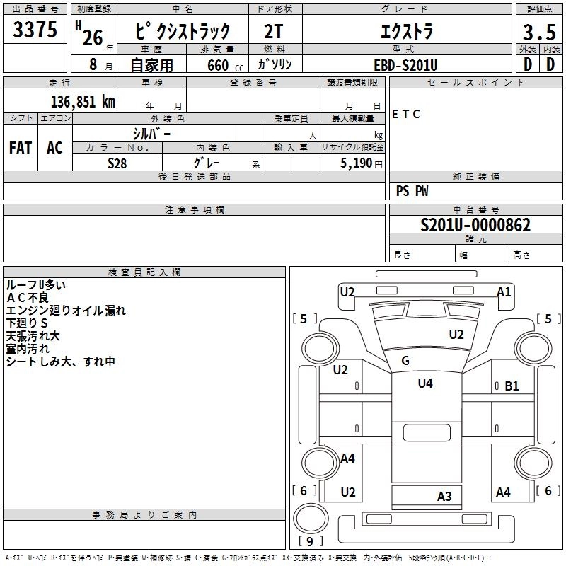 Год выпуска2014 Пробег 137 000 км КузовS201U Комплектация EXTRA