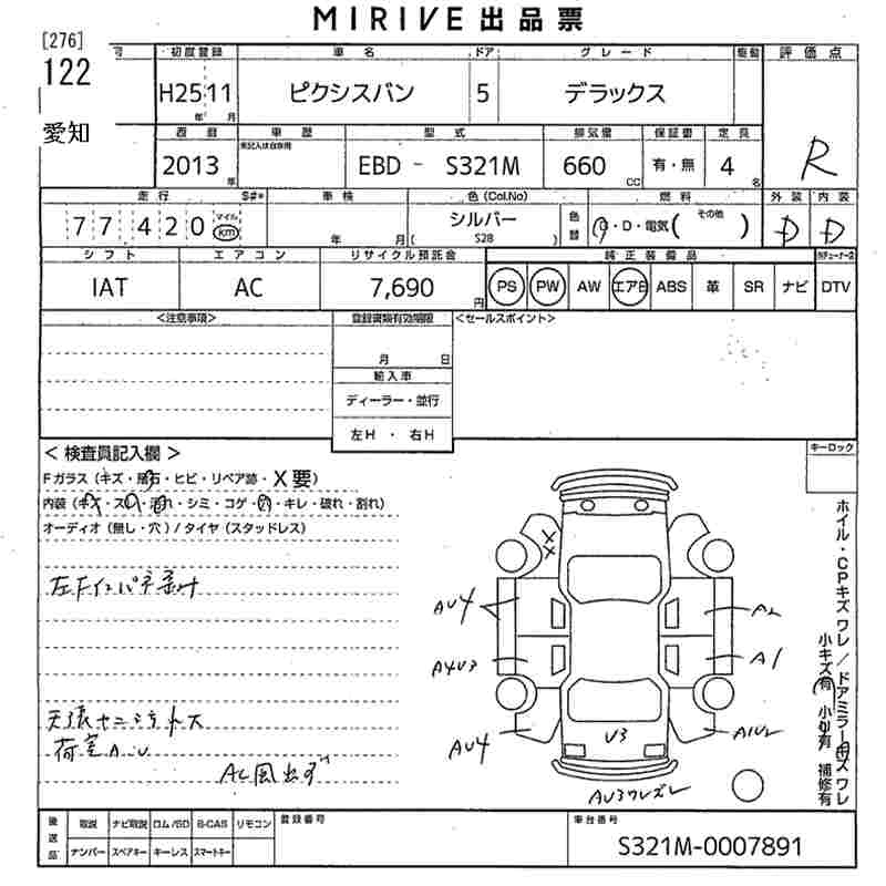 Статус не продан Лот 122 Аукцион MIRIVE Aichi Дата аукциона 30.01.2026