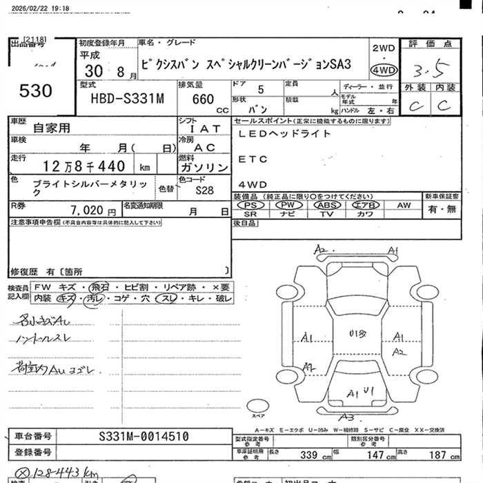 Год выпуска2018 Пробег 128 000 км КузовS331M Комплектация4WD SPECIAL CLEAN VER. SAIII