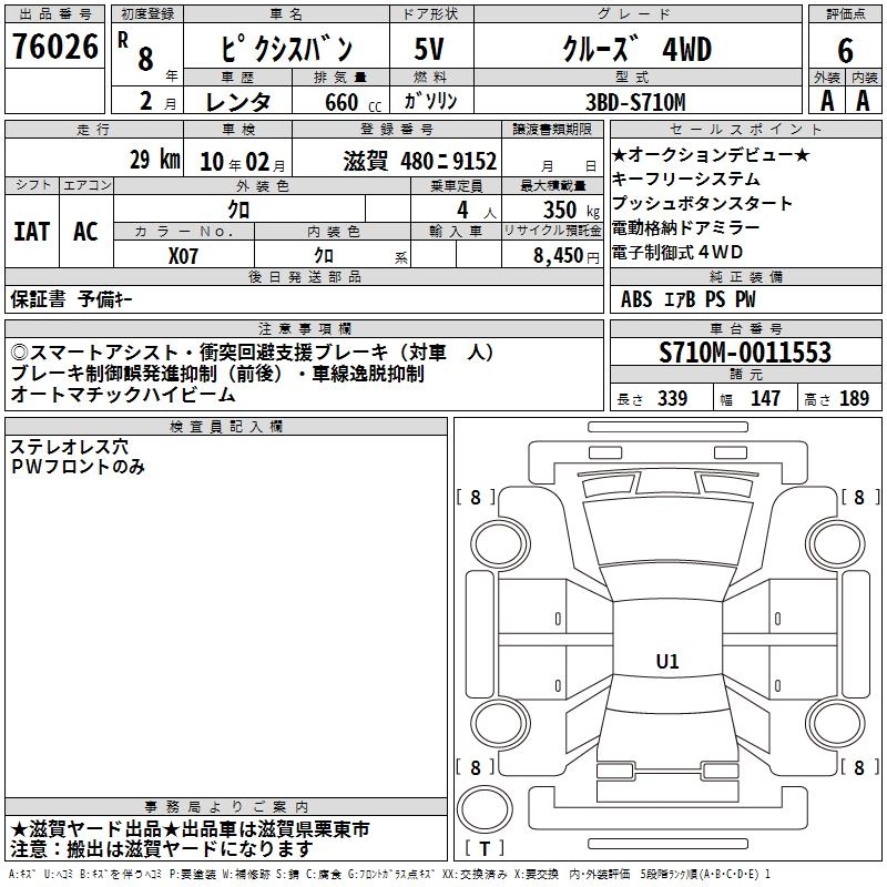 Объем660 сс Трансмиссия Автомат Привод 4WD Оценка6