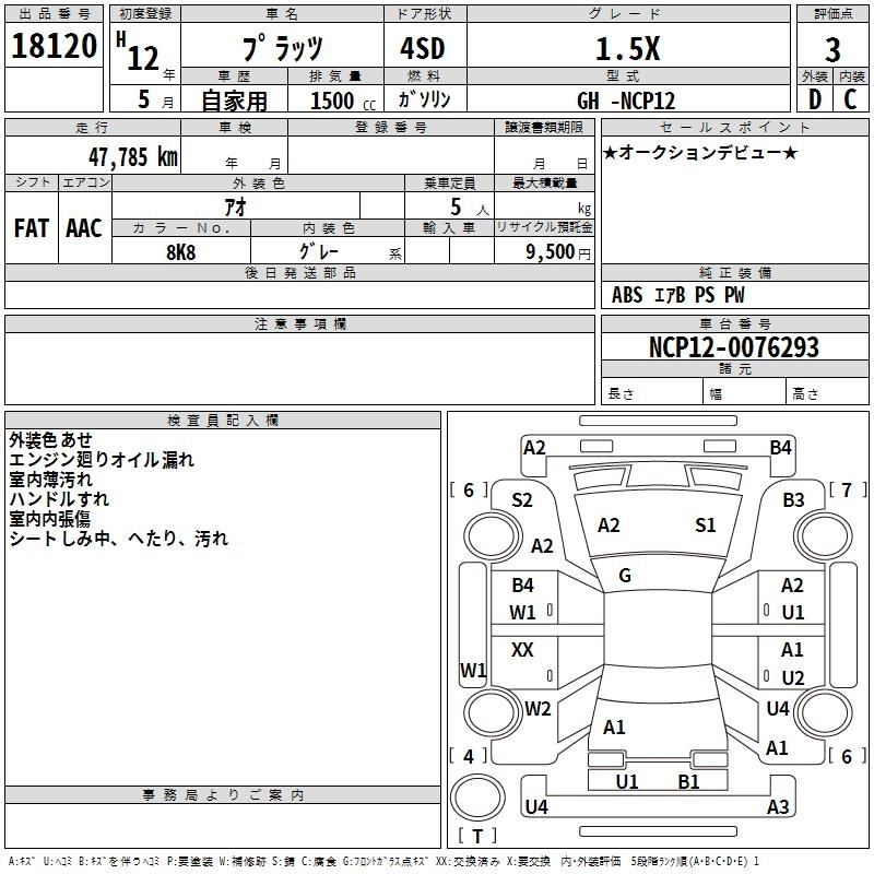 1.5X S PACKAGE TA-NCP12 1NZ-FE FF 4AT 1496cc 110ps(81kW)/6000rpm AИ-92 1 498 000