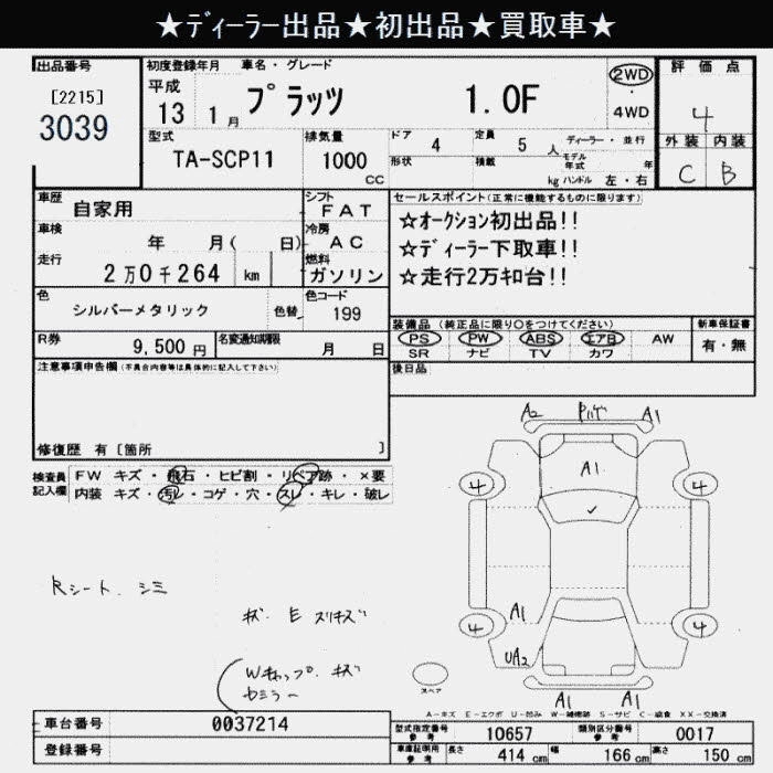 | 1.0F L PACKAGE LIMITED | TA-SCP11 | 1SZ-FE | FF | 4AT | 997cc | 70ps(51kW)/6000rpm | AИ-92 | 1 228 000 | |