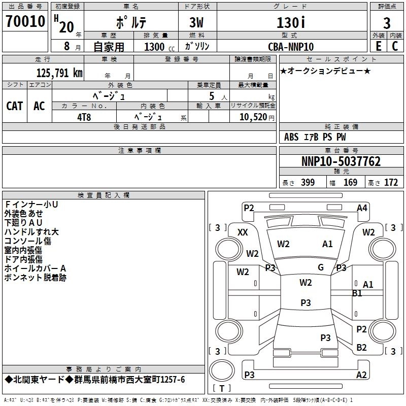 TOYOTA PORTE 2008 г., лот № 70010