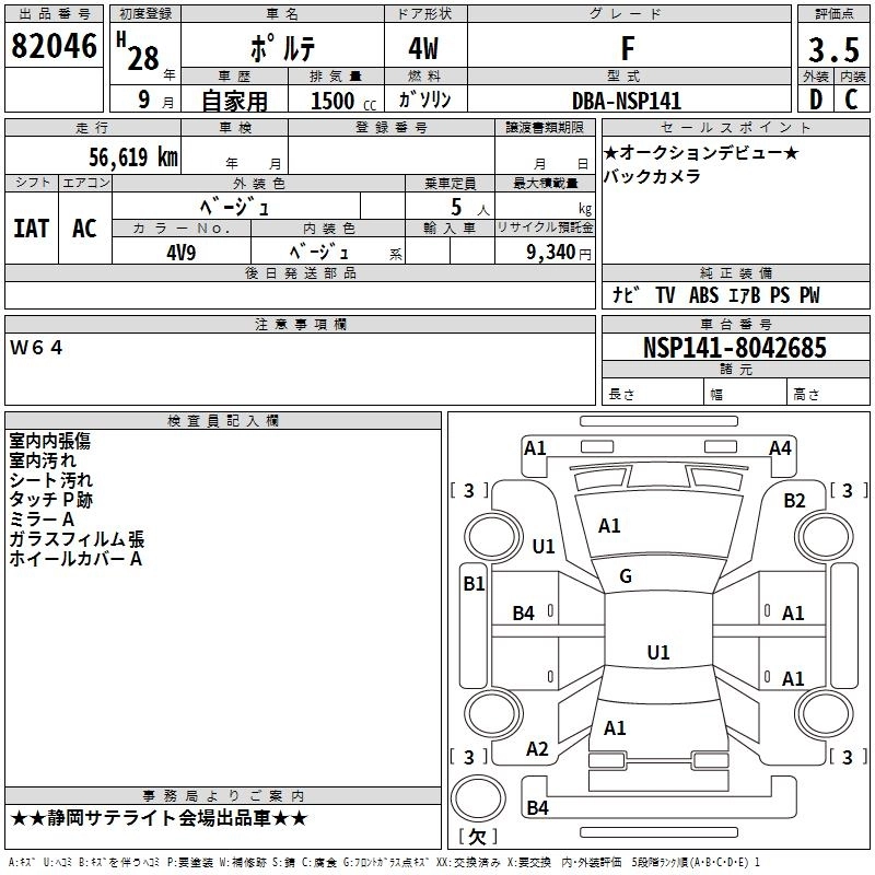 | Y | DBA-NSP141 | 2NR-FKE | FF | CVT | 1496cc | 109ps(80kW)/6000rpm | AИ-92 | 1 839 240 | |